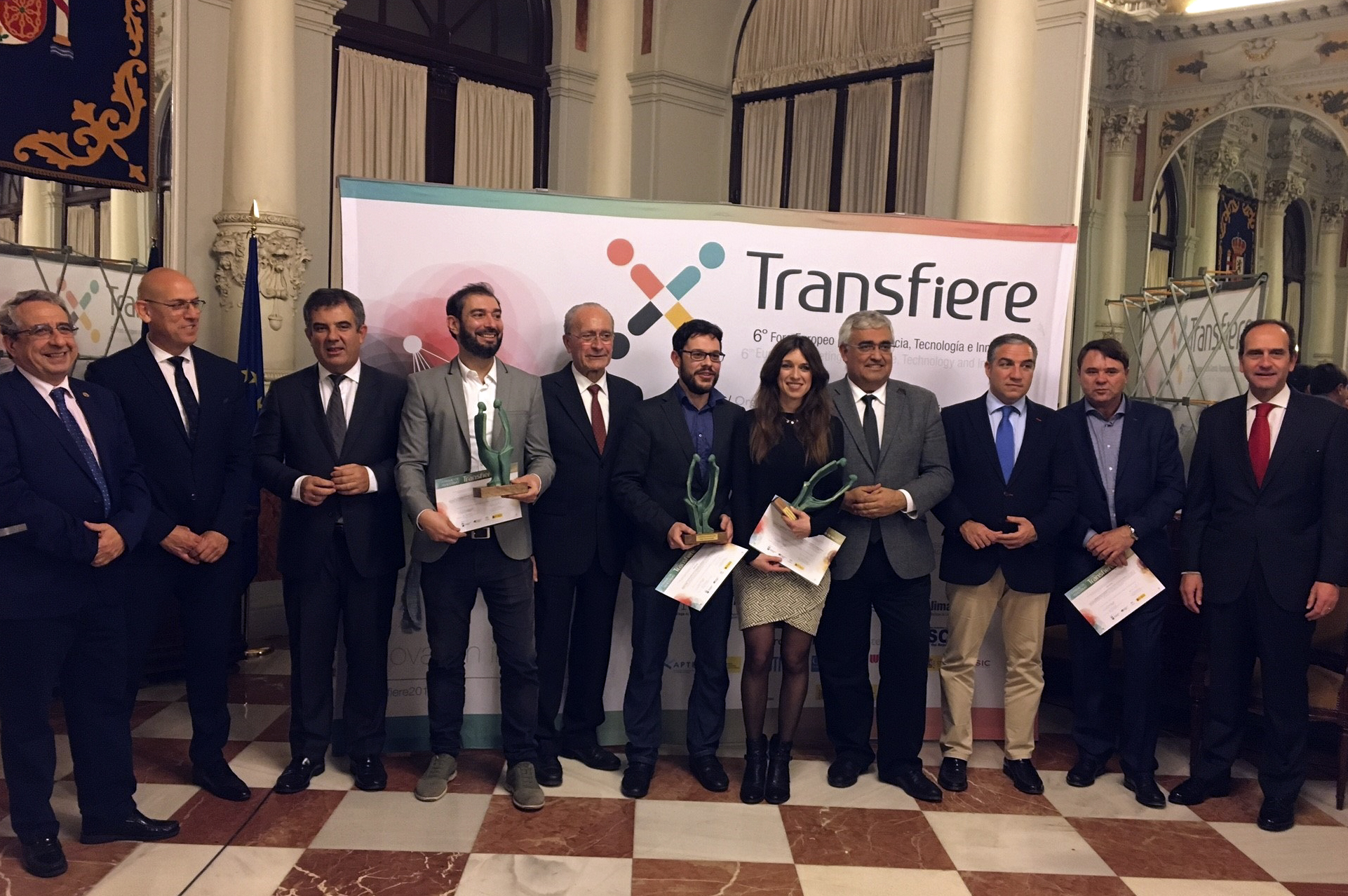 El consejero de Economía y Conocimiento de la Junta de Andalucía, Antonio Ramírez de Arellano; el alcalde de Málaga, Francisco de la Torre; el secretario general de Ciencia e Innovación del Ministerio de Economía, Industria y Competitividad, Juan María Vázquez;  el presidente de la Diputación Provincial de Málaga, Elías Bendodo; el rector de la Universidad de Málaga, José Ángel Narváez, y el presidente del Colegio de Periodistas de Málaga, Rafael Salas, han entregado los II Premios de Periodismo ‘Foro Transfiere’.