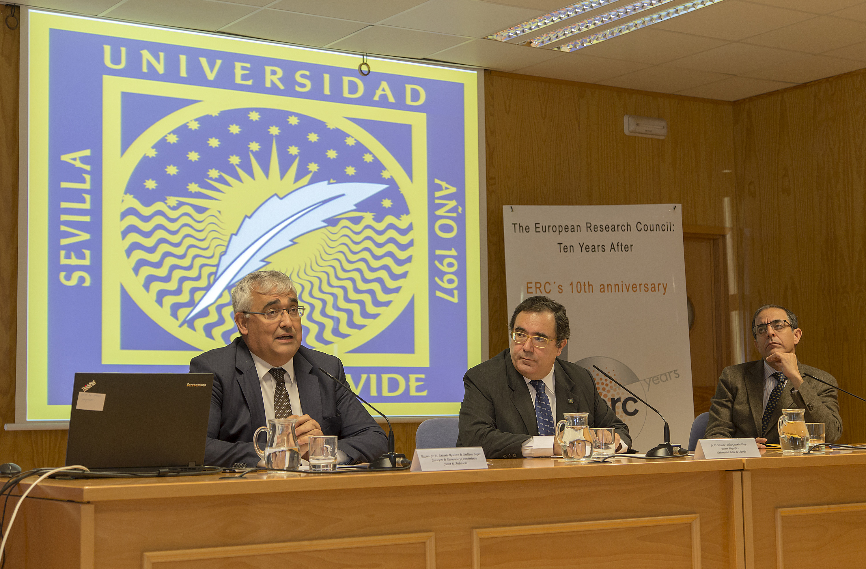 Tras la inauguración, el director del departamento de. Gestión Científica del ERC, José María Fernández de Labastida (desde 2011), ha impartido la conferencia “The ERC: ten years after”. A continuación, se ha celebrado la mesa redonda “Ciencia excelente en Andalucía” con la participación de beneficiarios de ayudas de las universidades Hispalense y Pablo de Olavide: Marta Artal, Bethany Aram, Manuel Pérez por parte de la UPO y José López Barneo, Andrés Aguilera y Eva Bravo de la Universidad de Sevilla.