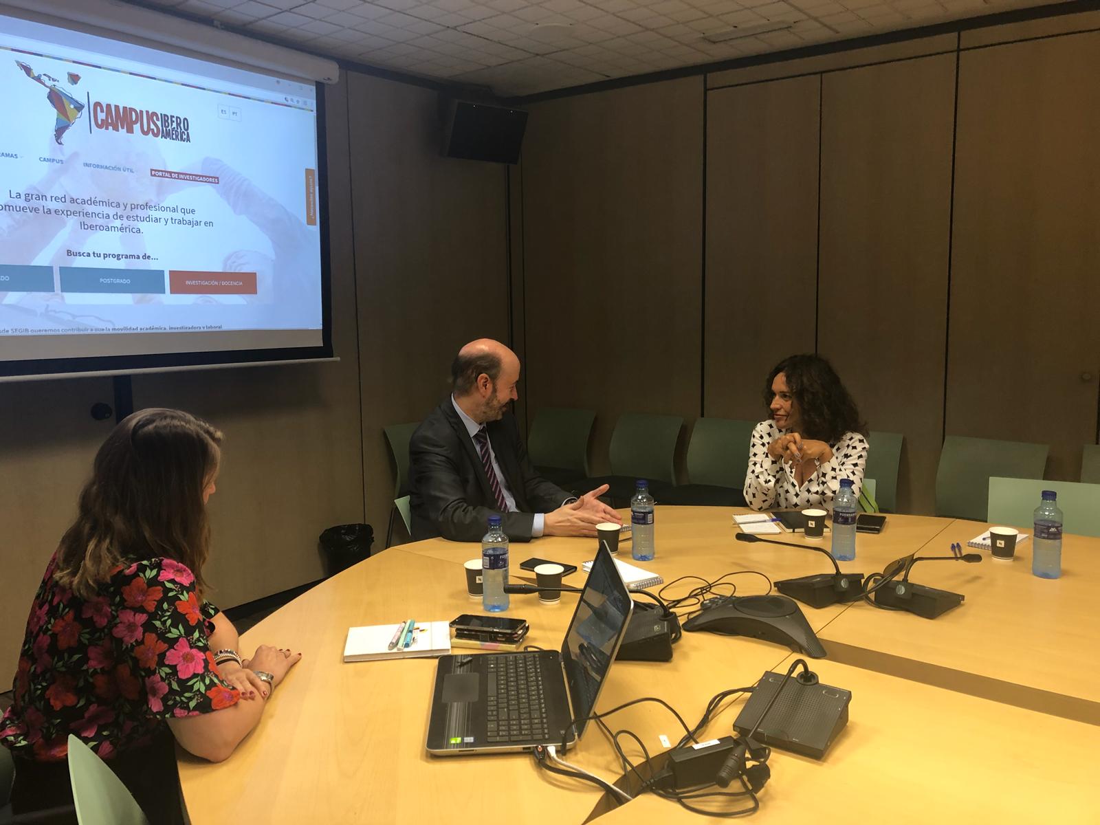 La consejera de Conocimiento mantiene una reunión de trabajo con el director del Espacio Iberoamericano del Conocimiento, Félix García