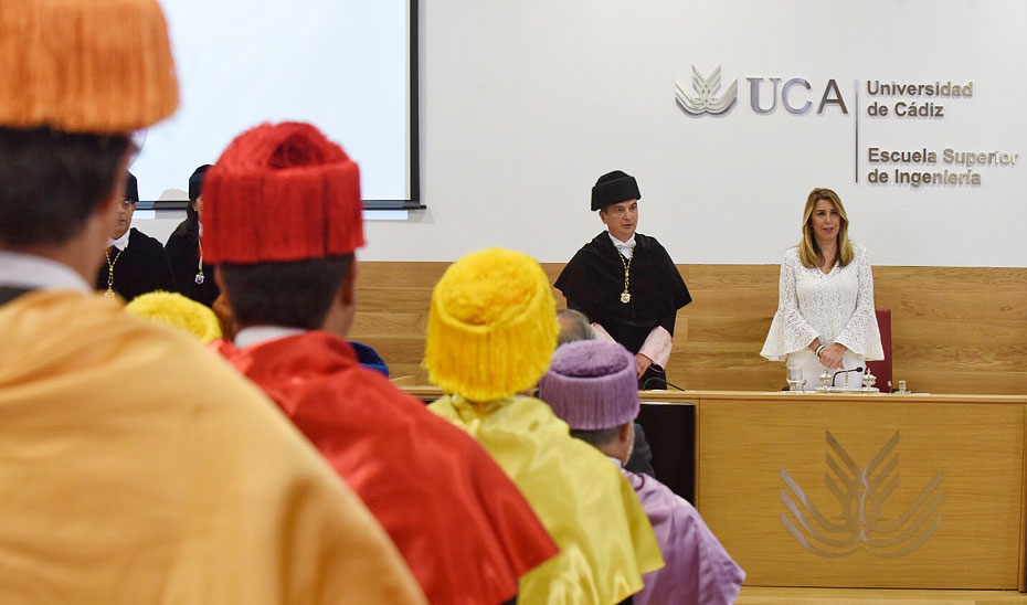 La presidenta, Susana Díaz, durante la inauguración oficial en Cádiz del inicio del curso 2018/2019 de las diez universidades públicas andaluzas.