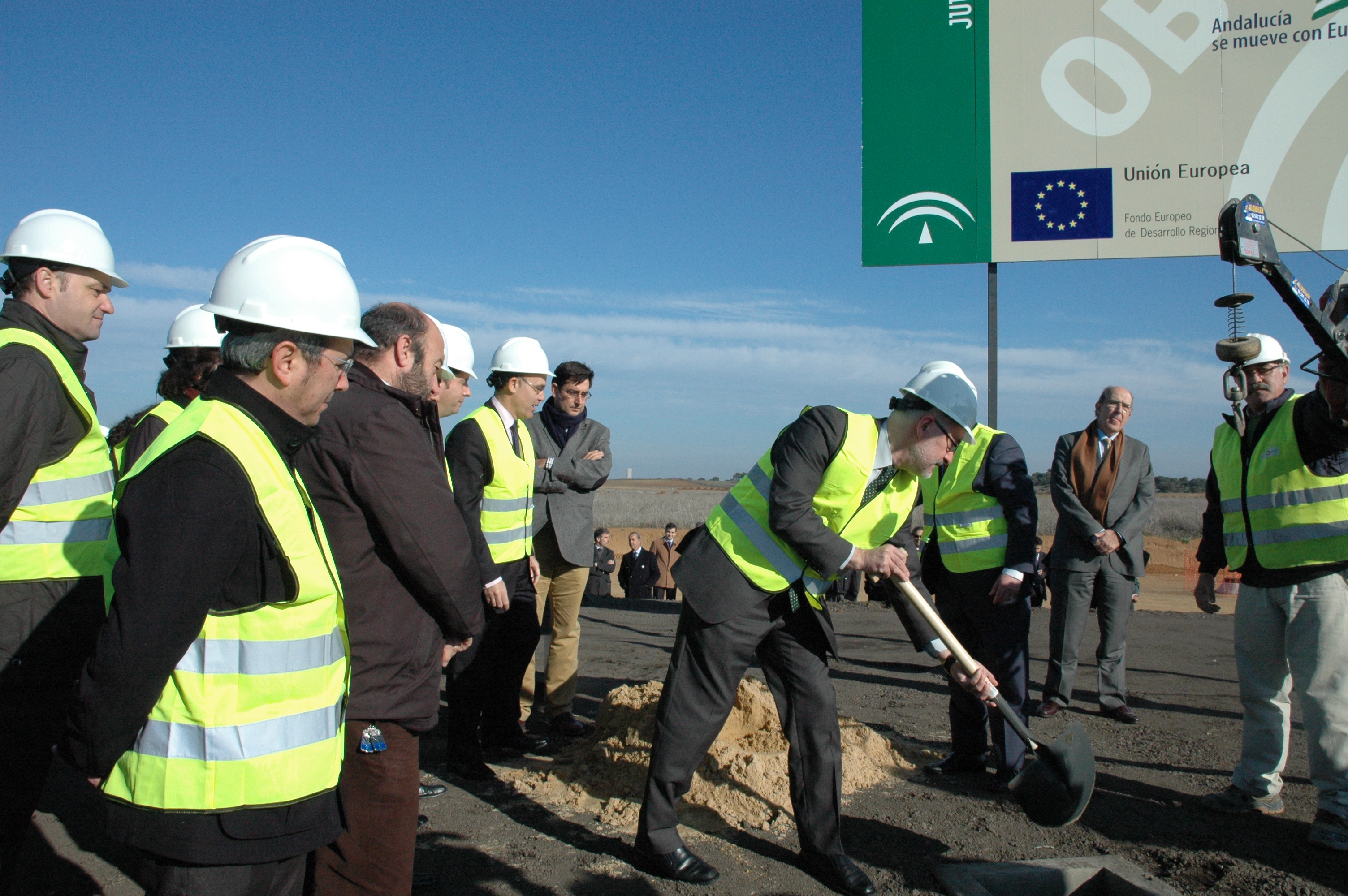 El consejero de Economía, Innovación y Ciencia, Antonio Ávila, ha presidido el acto de colocación de la primera piedra del edificio Soland Center, Centro de Innovación y Servicios Avanzados del Parque de Innovación Empresarial, Soland, ubicado en Sanlúcar la Mayor. Este centro albergará, entre otras instalaciones, uno de los centros de I+D de Abengoa para el desarrollo de nuevas tecnologías fotovoltaicas, en virtud de un convenio firmado durante el acto entre el consejero delegado de Abengoa Solar, Pedro Robles, y el presidente del consejo de administración de Solana y director general de la Agencia IDEA, Antonio Valverde.