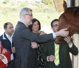 El Consejero de Economía, Innovación y Ciencia, Antonio Ávila, durante el recorrido por las instalaciones equinas.