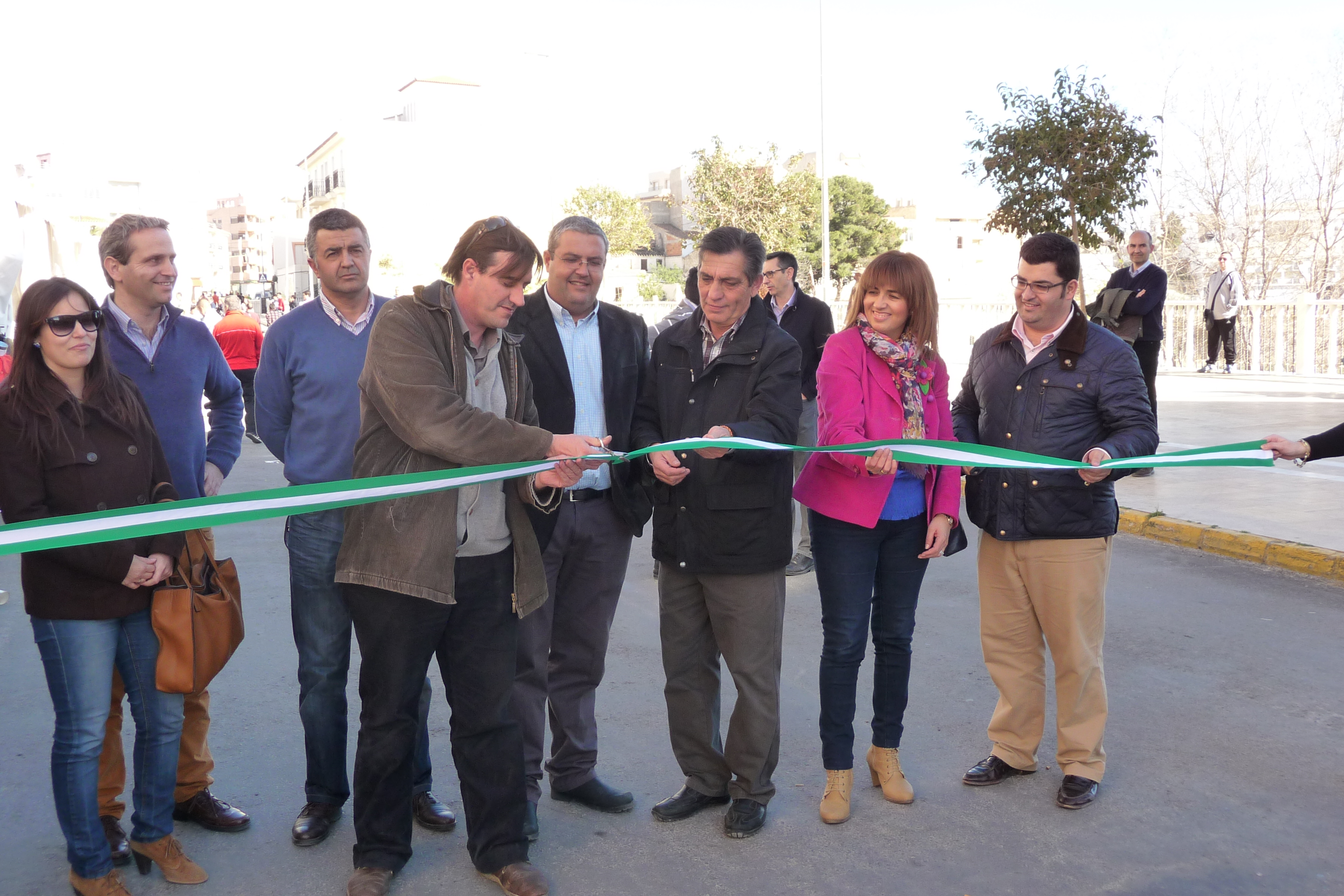 Inauguración del mercado de saldos de Albox a cargo de responsables municipales de Albox, el presidente de AEPA y responsables del CADE albojense.