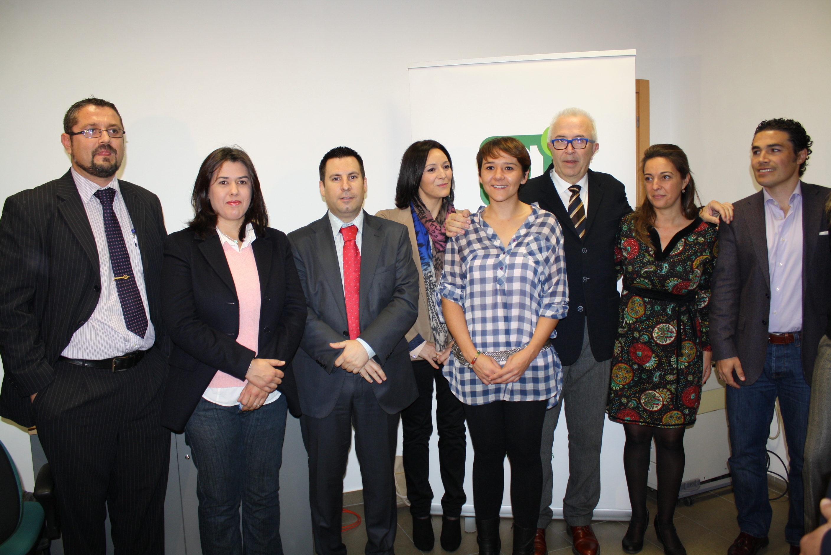 El consejero de Economía, Innovación, Ciencia y Empleo, José Sánchez Maldonado, junto a los emprendedores alojados en CADE de La Carlota y resto de autoridades.